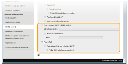 Nastavení ověřování SMTP nebo šifrované komunikace se serverem SMTP