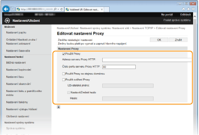 Zaškrtněte políčko [Použít Proxy] a zadejte požadovaná nastavení.