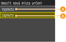 Klepněte na tlačítko <Omezit funkci VYS.>  <Omezit nová místa určení>.