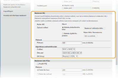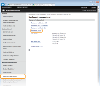 [Nastavení IPSec].