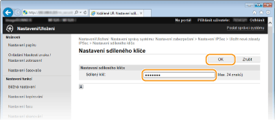 Zadejte předsdílený klíč o délce maximálně 24 alfanumerických znaků a klikněte na tlačítko [OK].