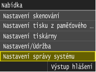 Zadejte ID nebo PIN výhradně pro správce s přístupovými právy k <Nastavení sítě> a <Nastavení správy systému>. ID je <ID správce systému> a PIN je <PIN správce systému>. Můžete také zaregistrovat jméno správce.