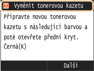 Nevyměňujte tonerovou kazetu dříve, než se objeví zpráva, která vás k tomu vyzve.