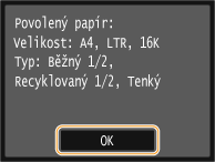 Zkontrolujte, že je v zařízení vložen papír velikosti a typu odpovídajícího údajům na obrazovce, a klepněte na tlačítko <OK>.