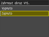 Pokud vyberete možnost <Zapnuto> nebo <Jen dojde-li k chybě> pro <Hlášení o výsledku fax. VYS.>, může být do hlášení zahrnuta část faxovaného dokumentu. Nastavte <Zahrnout obraz VYS.> na <Zapnuto>.