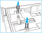 Skub papirstyrene, indtil de klikker på plads. Hvis papirstyrene ikke er justeret korrekt, vises papirformatet ikke korrekt på displayet. Det er også nødvendigt at justere papirstyrene korrekt for at undgå papirstop, snavsede udskrifter, eller at maskinens indre bliver tilsmudset.