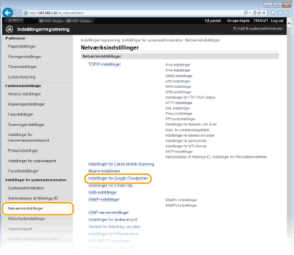 [Indstillinger for Google Cloudprinter].