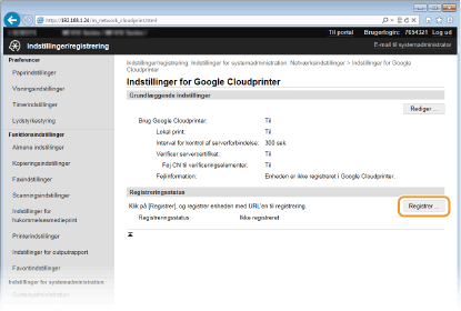 Registrering af maskinen til Google Cloudprinter