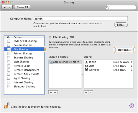 Vælg [Share files and folders using SMB (Windows)] (Del filer og mapper ved hjælp af SMB (Windows)).
