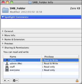 Vis [Sharing & Permissions] (Deling og tilladelser).