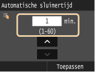op het bedieningspaneel te drukken. U kunt ook de instelling Automatische sluimertijd gebruiken om de machine automatisch in de slaapstand te zetten als deze gedurende de opgegeven tijd inactief is.