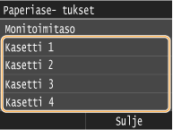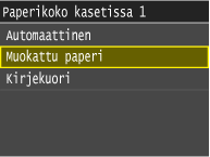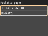 Jos lisäät paperia, jota ei tunnisteta automaattisesti, kuten LGL tai EXEC, määritä paperi etukäteen kohdassa <Paperikokolista 1 tunnistusta varten> tai <Paperikokolista 2 tunnistusta varten>.