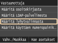 <Määritä osoitekirjasta> faksauksen päänäytössä.