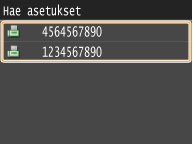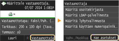 Jos katkaiset laitteesta virran tai asetat <Rajoita uusia vastaanottajia> -asetuksen arvoksi <Kyllä>, aiemmat vastaanottajat poistetaan ja tämä toiminto poistetaan käytöstä. Käytettävissä olevien vastaanottajien rajoittaminen