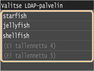 Jos toimistossasi on asennettuna LDAP-palvelin, voit myös määrittää palvelimeen tallennetut vastaanottajat. Kun haluat määrittää vastaanottajat, avaa LDAP-palvelin laitteen avulla ja valitse sitten vastaanottaja.
