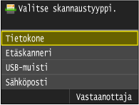 Ennen kuin skannaat laitteesta, sinun on ensin määritettävä asetukset sekä laitteessa että tietokoneessa. Tee seuraavat vaiheet.
