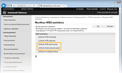 Valitse [Käytä WSD-skannausta]- ja [Käytä tietokoneskannausta] -valintaruudut.