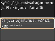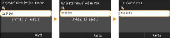 <Järjestelmänvalvojan tunnus ja PIN>.