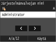 Syötä enintään 32 merkkiä pitkä järjestelmänvalvojan nimi ja napauta kohtaa <Käytä>. Tekstin syöttäminen