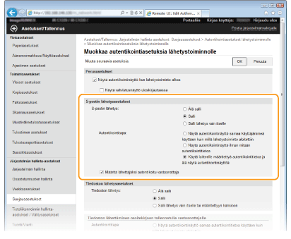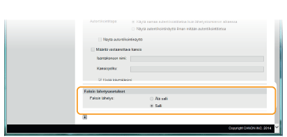 Valitse tämä, kun haluat todentaa käyttäjänimellä, joka on asetettu LDAP-palvelimella. Jos haluat näyttää todennusnäytön, valitse [Näytä autentikointinäyttö] -valintaruutu.
