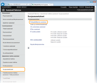 Valitse [Suojausasetukset]  [Etäkäyttöliittymän asetukset].