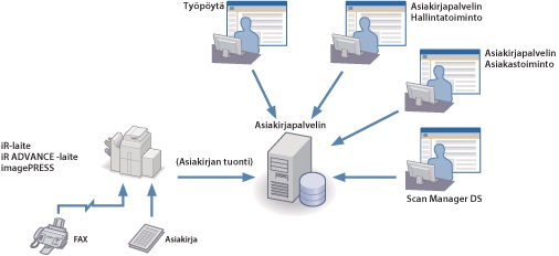 iW Document Server on asiakirjanhallintapalvelin, jonka asiakasohjelmistoja ovat iW Document Server Client Function ja iW Desktop. Näillä ohjelmistoilla luotujen asiakirjojen lisäksi se pystyy myös tallentamaan skannattuja asiakirjoja verkon kautta, kuten iR-sarja -monitoimilaitteilla tai DR-sarjan asiakirjaskannereilla skannattuja asiakirjoja. Tämän ansiosta on mahdollista rakentaa erittäin toimiva asiakirjanhallintajärjestelmä tallennettujen asiakirjojen tehokkaaseen hallintaan.