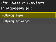 Εάν επιλέξετε <Ρύθμιση Αργότερα>, η λειτουργία λήψης ορίζεται σε <Αυτ.>. Αργότερα, όταν θέλετε να διαμορφώσετε τις ρυθμίσεις φαξ, εμφανίστε την οθόνη ρύθμισης φαξ πατώντας <Μενού>