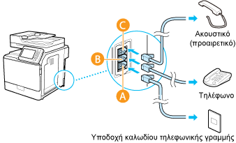 Εάν χρησιμοποιείτε τηλέφωνο ή τηλεφωνητή, συνδέστε το στην υποδοχή εξωτερικού τηλεφώνου (