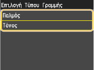 Ακολουθήστε την παρακάτω διαδικασία για να ορίσετε τον τύπο της τηλεφωνικής γραμμής. Εάν δεν είστε βέβαιοι για τον τύπο της γραμμής τηλεφώνου που χρησιμοποιείτε, επικοινωνήστε με την τοπική τηλεφωνική εταιρεία. Η ρύθμιση <Επιλογή Τύπου Γραμμής> μπορεί να μην είναι διαθέσιμη ανάλογα με τη χώρα όπου χρησιμοποιείτε τη συσκευή.