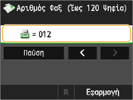 Πατήστε <Παύση> για να εισαγάγετε μια παύση στο τέλος του αριθμού φαξ, όταν είναι απαραίτητο.