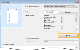 Εμφανίστε τα στοιχεία που θα συμπεριληφθούν σε ένα συνοδευτικό φύλλο. Για να αλλάξετε τα στοιχεία που θα συμπεριλαμβάνονται, πατήστε [Settings] (Ρυθμίσεις).