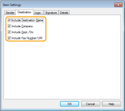Επιλέξτε τα στοιχεία προορισμού που θέλετε να συμπεριλάβετε και εισαγάγετε τις πληροφορίες. Στο συνοδευτικό φύλλο συμπεριλαμβάνονται τα ονόματα προορισμών, τα ονόματα εταιρειών, τα ονόματα τμημάτων και οι αριθμοί φαξ που έχουν καθοριστεί στην καρτέλα [Select Destination] (Επιλογή προορισμού)/[Enter Destination] (Εισαγωγή προορισμού) (