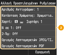 . Εάν αλλάξετε αυτές τις προεπιλεγμένες ρυθμίσεις, έτσι ώστε να ταιριάζουν στις λειτουργίες που πραγματοποιείτε πιο συχνά, δεν θα χρειάζεται να καθορίζετε τις ίδιες ρυθμίσεις κάθε φορά που εκτυπώνετε.