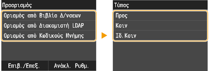 Για οδηγίες σχετικά με τον τρόπο χρήσης του Βιβλίου διευθύνσεων, δείτε την ενότητα Καθορισμός από το βιβλίο διευθύνσεων.