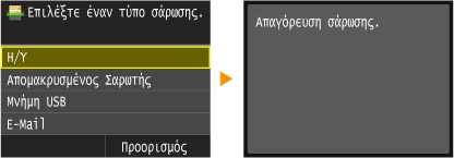 Εάν έχει επιλεγεί το πλαίσιο ελέγχου, μπορείτε να επιλέξετε <Η/Υ> ή <Απομακρυσμένος Σαρωτής> στην κύρια οθόνη και να σαρώσετε έγγραφα σε υπολογιστή οποιαδήποτε στιγμή. Καταργήστε την επιλογή στο πλαίσιο ελέγχου για να απενεργοποιήσετε τη σάρωση ακόμα και εάν έχουν οριστεί οι επιλογές <Η/Υ> ή <Απομακρυσμένος Σαρωτής>, όταν είναι ενεργοποιημένη η Διαχείριση μέσω κωδικών τμημάτων.