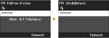 για να διαγράψετε τον κωδικό PIN (μένει κενό το πλαίσιο κειμένου) και έπειτα πατήστε <Εφαρμογή>.