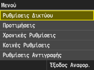 Όλες οι ρυθμίσεις σχετικά με το δίκτυο παρατίθενται μαζί με σύντομες περιγραφές. Οι προεπιλεγμένες ρυθμίσεις επισημαίνονται με έναν σταυρό στίξης (