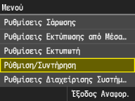 Όλες οι ρυθμίσεις σχετικά με την προσαρμογή των ρυθμίσεων και τη συντήρηση παρατίθενται μαζί με σύντομες περιγραφές. Οι προεπιλεγμένες ρυθμίσεις επισημαίνονται με έναν σταυρό στίξης (