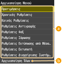 Για να αρχικοποιήσετε τις ρυθμίσεις στα μενού <Ρυθμίσεις Δικτύου> και <Ρυθμ. Διαχείρισης Συστήματος>, ανατρέξτε στην ενότητα Αρχικοποίηση ρυθμίσεων διαχείρισης συστήματος.