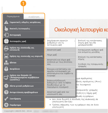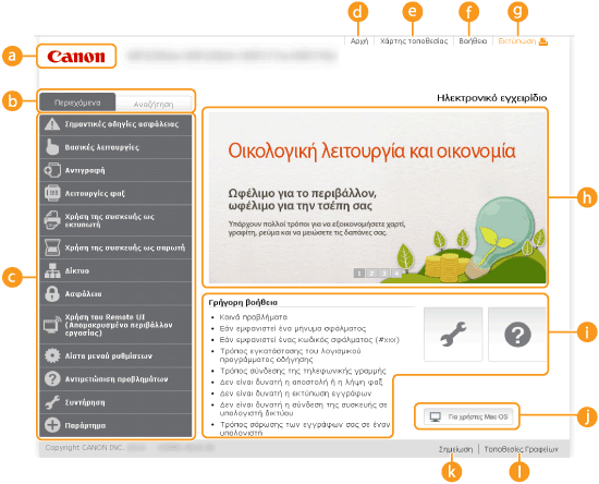 Εμφανίζεται ο πίνακας περιεχομένων για το Ηλεκτρονικό εγχειρίδιο.