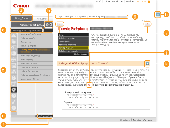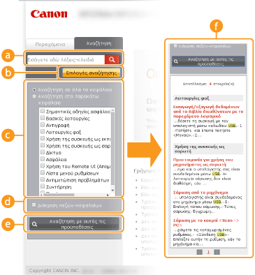 Καρτέλα [Περιεχόμενα]/[Αναζήτηση]