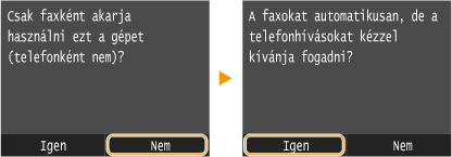 Ha korábban a <Beállítás később> lehetőséget választotta a faxbeállító képernyőn (A faxszám és a saját név bejegyzése), akkor a <Menü> <Faxbeállítások>