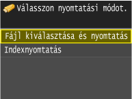 Az USB-memóriaeszközökön tárolt képfájloknak (csak JPEG-fájloknak) kinyomtathatja a miniatűrjeit. Ha miniatűr képeket szeretne nyomtatni, érintse meg a képernyőn az <Indexnyomtatás> lehetőséget, majd hajtsa végre a következő lépést.