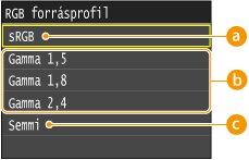 Ha a <Semmi> beállításnál a <RGB forrásprofil> érték van megadva.