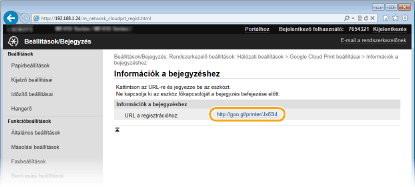 Kattintson az [URL a regisztrációhoz] mezőben látható URL-címre.
