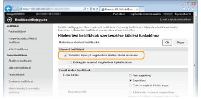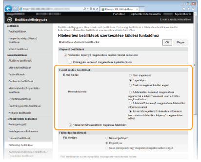 [Hitelesítési beállítások küldési funkcióhoz] gombra.