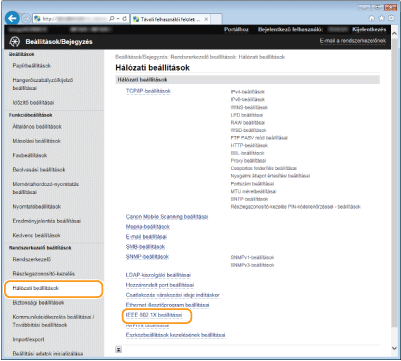 A készülék ügyféleszközként csatlakoztatható a 802.1X szabványú hálózatokra. A jellemző 802.1X-hálózatok egy RADIUS-kiszolgálóból (hitelesítés-kiszolgálóból), LAN-kapcsolóból (hitelesítőből) és hitelesítő szoftverrel ellátott ügyféleszközökből (adatszolgáltatókból) állnak. Ha egy készülék megpróbál csatlakozni a 802.1X szabványú hálózathoz, felhasználói hitelesítési lépéseken keresztül bizonyítania kell, hogy a kapcsolatot jogosult felhasználó hozza létre. A hitelesítési adatokat egy RADIUS-kiszolgálóra küldik, amely ellenőrzi azokat, majd a hitelesítés eredményétől függően engedélyezi vagy elutasítja a hálózati kommunikációt. Ha a hitelesítés sikertelen, akkor egy LAN-kapcsoló (vagy hozzáférési pont) blokkolja a hozzáférést a hálózaton kívülről.