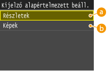 <Kijelző alapértelmezett beállításai>