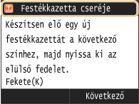 A kicserélendő festék színe megjelenik a kijelzőn. Ha több festékkazettát kell cserélni, a következő sorrendben cseréljen: Fekete, Sárga, Bíbor, Cián.
