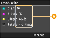 Ahol az alábbi leírásban „XXXX” látható, a tényleges üzenetekben a fekete, a sárga, a bíbor és a cián kazettaszín jelenik meg.
